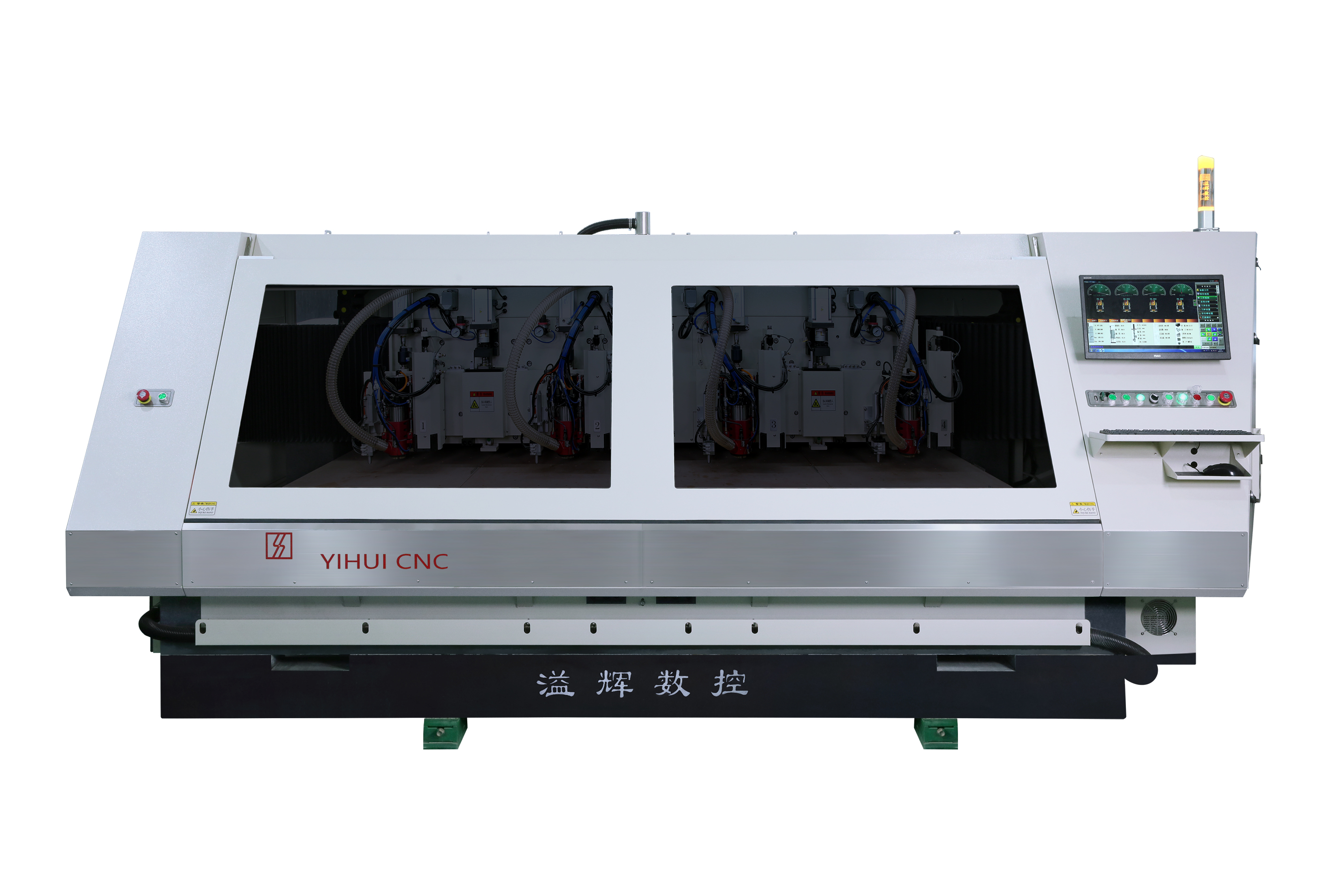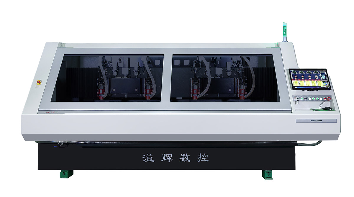 YH13085D-4高速度,高精度铣边机,设备采用全闭环控制系统,封闭式光栅尺,自动下料,机械手换刀,1,3,轴同时或者2,4,轴同时加工1300MM*850MM的线路板,可轻松解决加工超大板边问题,4个轴可同时加工660MM*760MM尺寸的板,配置自动打拔销钉等功能,XY轴采用线码直驱,移动速度达到60M/分,加工精度在0.05MM范围内,生产效率和加工精度达到国际先进水平